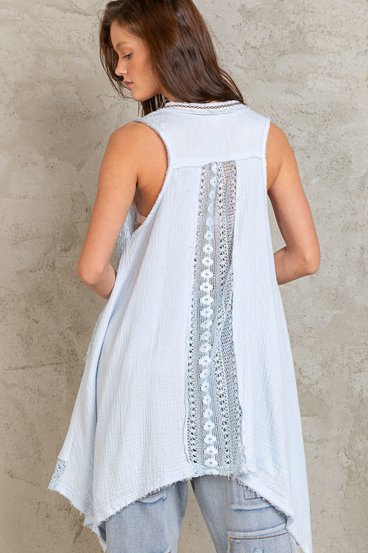Camiseta sin mangas con encaje de color aguamarina Sunshine