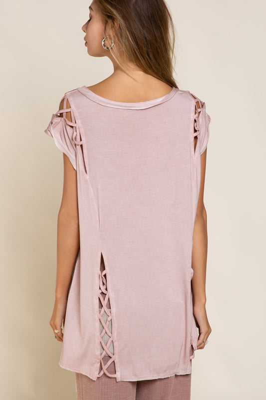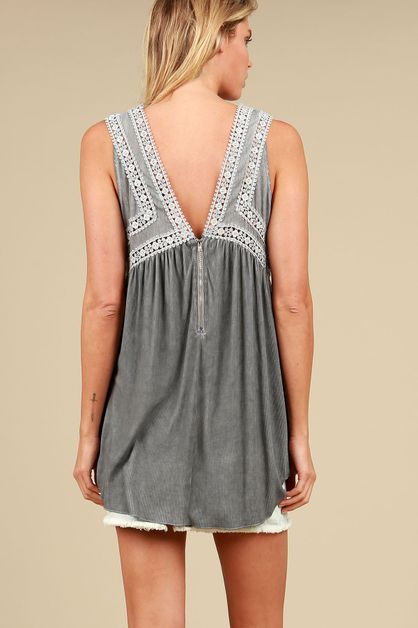 Camiseta sin mangas con encaje color gris oliva Sunshine