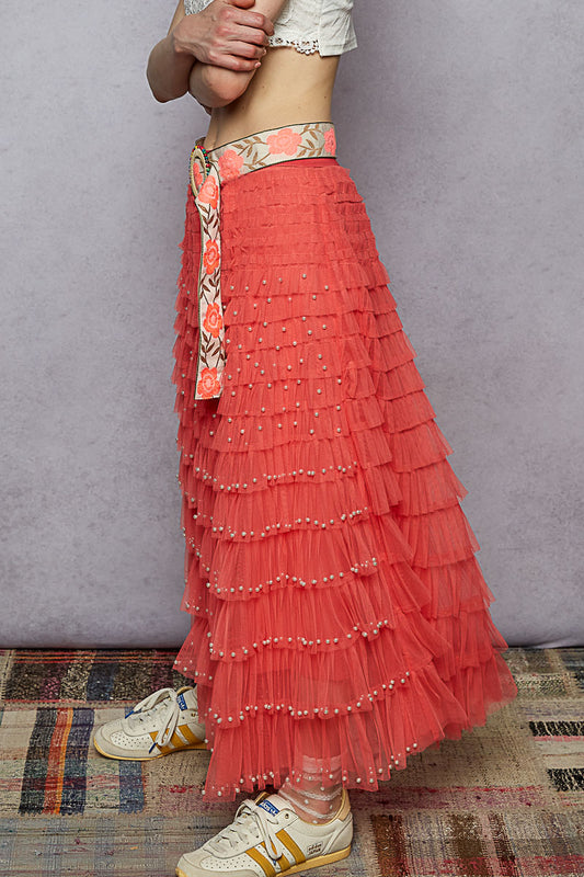 Falda de pétalos y perlas