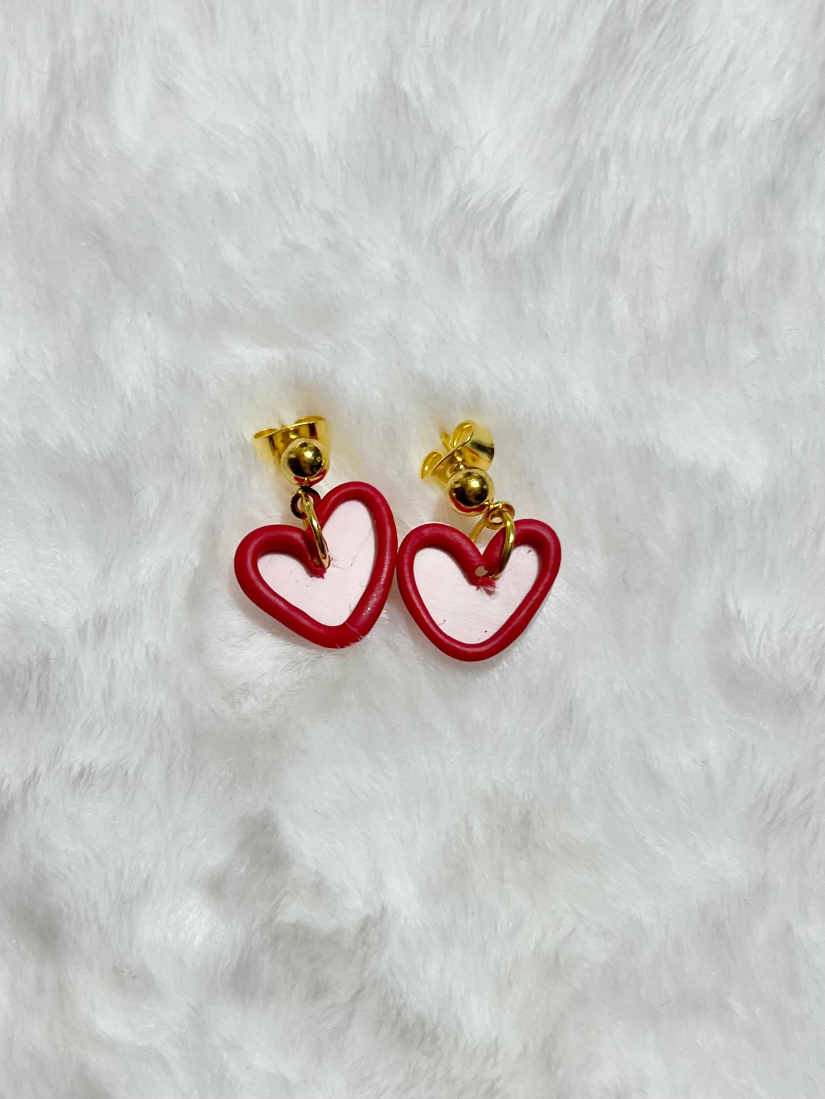 Beautiful dangle heart shape earrings made with polymer clay.